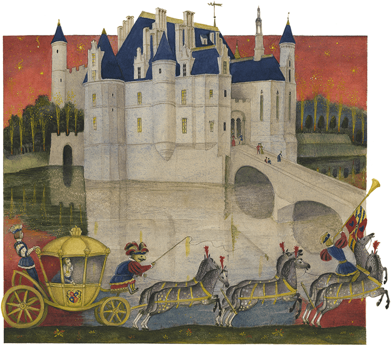 Волшебница тотчас пустилась в дорогу и через час приехала в замок на огненной колеснице, запряжённой драконами.