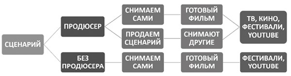 Очевидно, что любой сценарий аудиовизуального продукта пишется для того, чтобы впоследствии ПО НЕМУ СНЯЛИ этот самый АУДИОВИЗУАЛЬНЫЙ ПРОДУКТ (фильм, программу, сериал и т. д.). Возможно, что снимать будете вы сами: тогда ваш конечный продукт – ГОТОВЫЙ ФИЛЬМ. Если вы сами снимать не собираетесь, тогда ваш конечный продукт – ЛИТЕРАТУРНЫЙ СЦЕНАРИЙ. И с тем, и с другим нужно что-то делать. ЧТО?