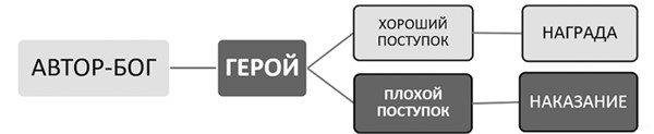2. Автор-Бог одинаково ЛЮБИТ ВСЕХ СВОИХ ПЕРСОНАЖЕЙ. Не может быть так, что одного персонажа он любит и помогает ему, а другого нет.