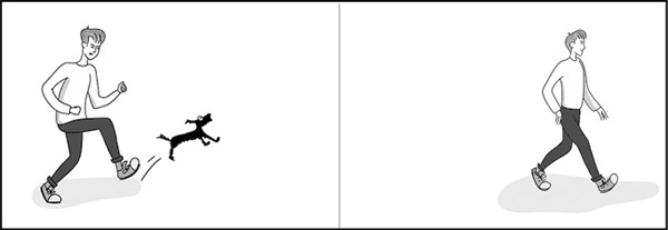 Вторая ситуация: герой пнул песика и пошел дальше. ИСТОРИЯ НЕЗАВЕРШЕННАЯ. Чтобы сбалансировать удар, нужно либо НАКАЗАТЬ ПАРНЯ, либо показать, ЗА ЧТО НАКАЗАЛИ ПЕСИКА.