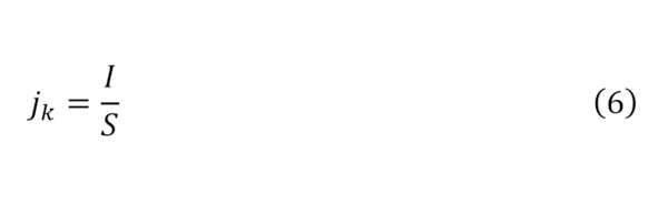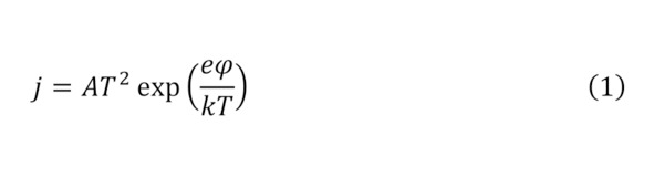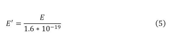 Далее из, приведённых вычислений, можно определить и напряжение, то есть кинетическую энергию долетающих до анода зарядов, откуда проявляется их напряжение (5), а поскольку известно значение плотности тока в самом катоде (6), то в зависимости от соотношения этой плотности тока и плотности вылетающего заряда можно найти процент выхода зарядов из катода (7) или своего рода катодную эффективность.