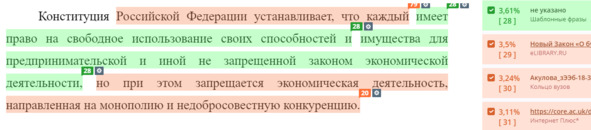 – если текст скомпилирован поабзацно, и компиляция показывает уникальность, это связано с уникальным сочетанием абзацев. Изменение порядка следования абзацев или правка текста, внутри абзаца, может привести к появлению плагиата.
