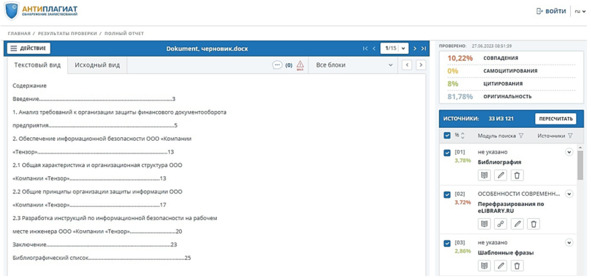 Рисунок 19 – Отчет Антиплагиат от 27.06.2023 – 08:51:39