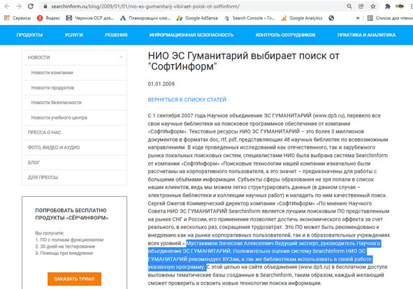 Рисунок 2 – Пресс-релиз СёрчИнформ