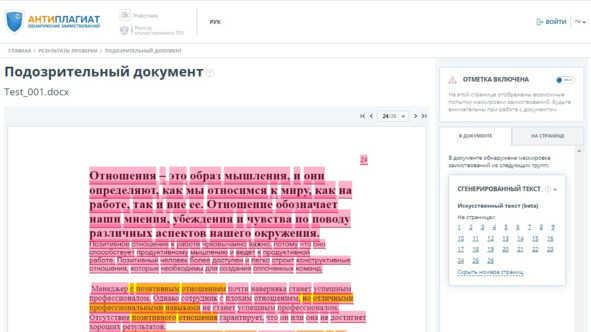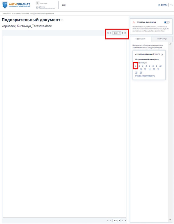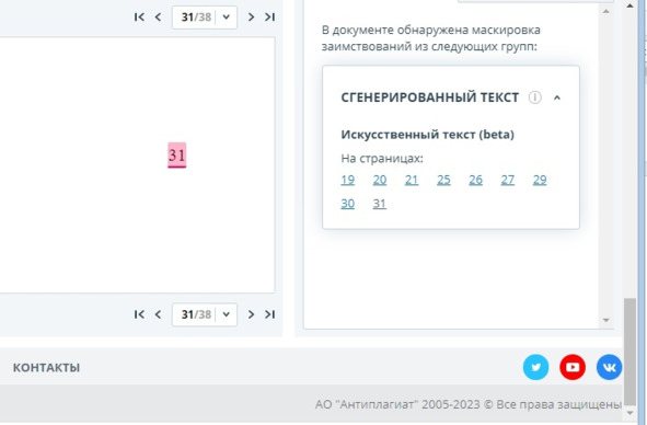 Рисунок 22 – Нумерация страниц отнесена Антиплагиатом к генеративному тексту ИИ