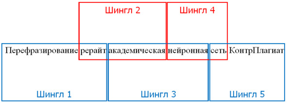 Шингл (далее – Ш) – последовательность количества слов (2, 3, 4, 5 и т.д.), используемая в алгоритме проверки уникальности текста, рис. 25. Уникальность проверяется путем сравнения текста источника с текстом, который был перефразирован. Данную сверку можно проводить локально, используя бесплатный продукт AntiPlagiarism.NET.