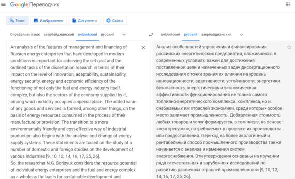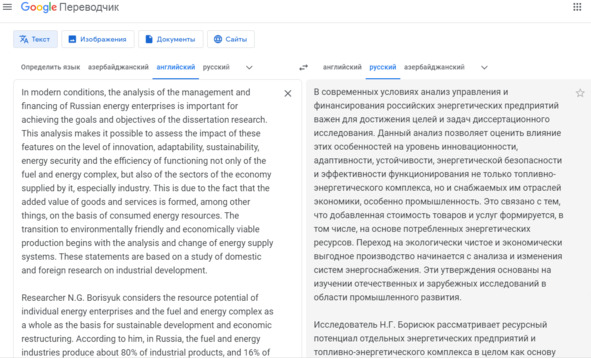 Известно, что GPT допускает ошибки, поэтому с целью их частичного исправления, дальнейшего повышения уникальности, а также удаления маркеров генеративного текста, можно выполнить вторичный перевод текста в направлении: русский-английский; английский-русский, с помощью translate.google.com, рис. 30.
