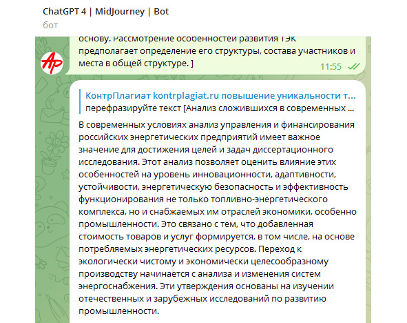Рисунок 28 – Перефразирование текста с помощью GPT