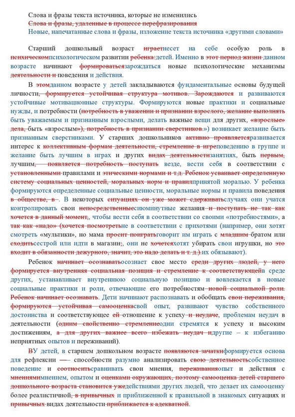 2) Любой текст перед первой проверкой должен подвергаться глубокому рерайту – это снижает последующие трудозатраты, т.к. вы не противостоите первой, второй, третьей и т. д. версиям своей работы. В процессе перефразирования, рерайта, необходимо добиться отличия текстов источника и перефразированного текста. Данное отличие, при сверке по показателю Ш2 должно составлять более 80%.