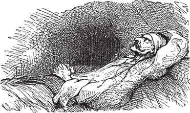 Увидев это, Санчо во всю прыть поскакал на помощь своему господину. Дон Кихот лежал словно мертвый, ошеломленный страшным ударом мельничного крыла.