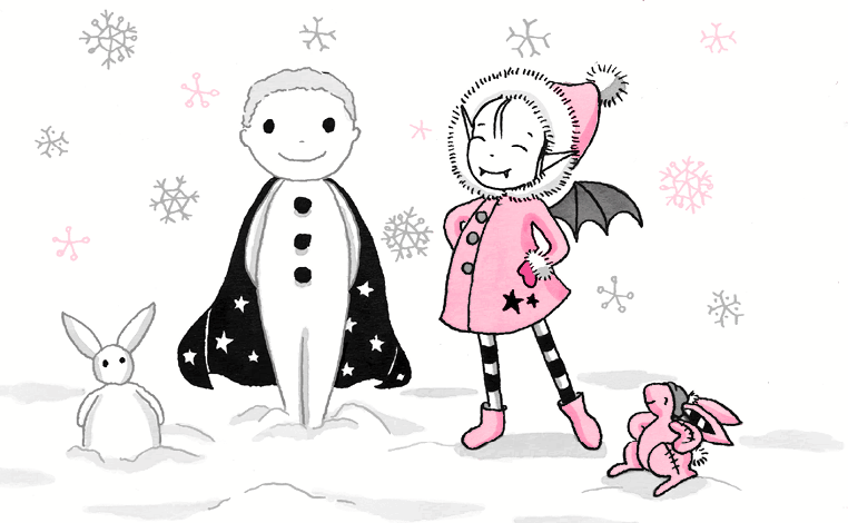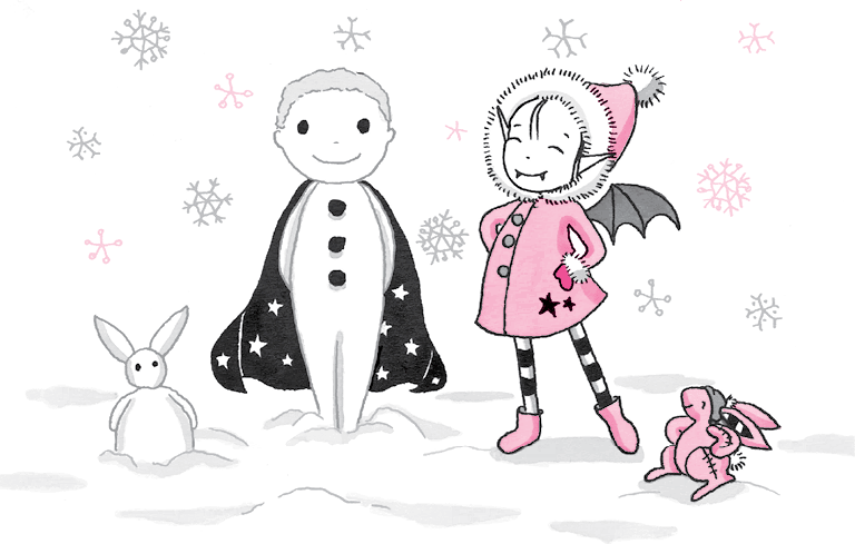 Я отошла в сторонку, чтобы полюбоваться своей работой, а Розовый Кролик – своей. Снова подойдя к снеговику, я нарисовала пальцем на его лице широкую улыбку. Теперь он выглядел таким дружелюбным, что я даже улыбнулась ему. И тут снежный мальчик мне подмигнул! Я аж подпрыгнула от удивления!