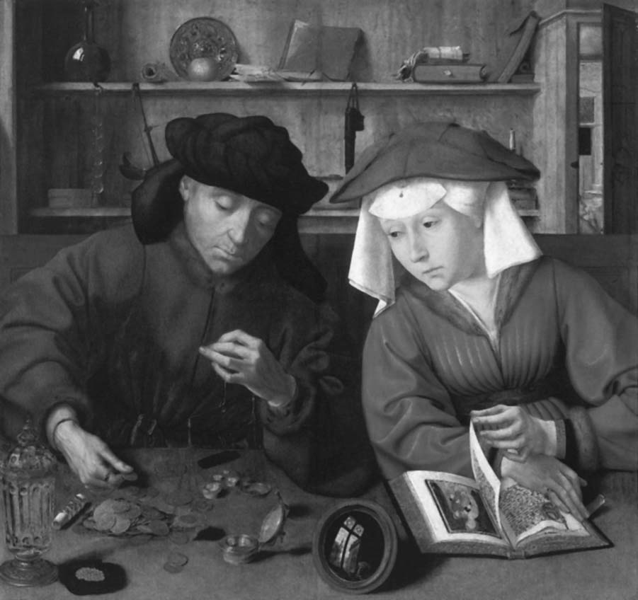 Resmin içine yerleştirilmiş küçük dışbükey ayna, resmin içinden dışına doğru yeni bir bakış açısı tanımlıyor. Tıpkı rehincinin karısının sayfasını kaldırmış olduğu kitabın içindeki resim gibi yeni bir katman yaratıyor küçük ayna.