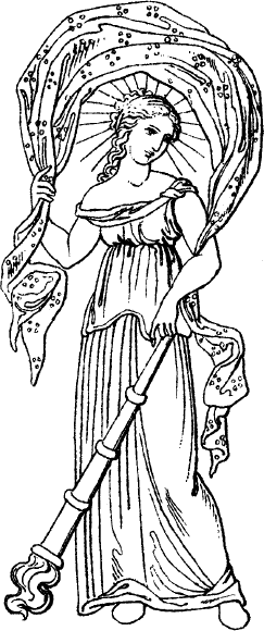 Деметра открыла Келею и Метанейре, кто она, и приняла свой обычный образ богини. Божественный свет разлился по покоям Келея. Богиня Деметра стояла величественная и прекрасная, золотистые волосы спадали на ее плечи, глаза горели божественной мудростью, от одежд ее лилось благоухание. Пали на колени перед ней Метанейра и ее муж.