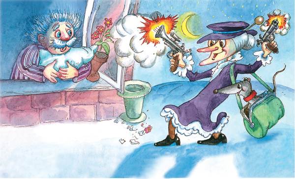 – Я знаю, кто в нас кидается, – сказал Чебурашка. – Это старуха Шапокляк. Видишь, на столбе крыса Лариска сидит?