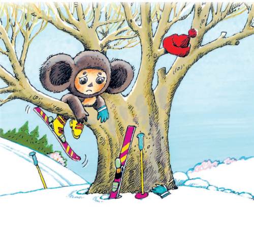 Потом Чебурашка полчаса собирал палки, лыжи, варежки и шапку.