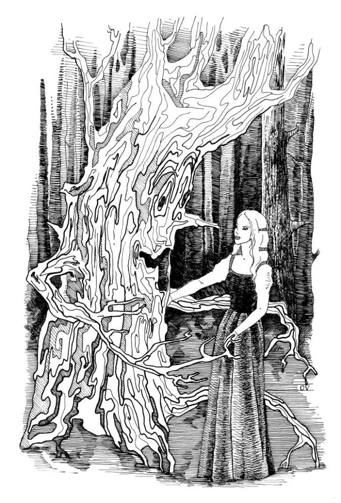 Внезапно, перед девушкой выросла тень. Огоньки запорхали вокруг нее, и златовласка увидела ясень. Шероховатая кора, желто-оранжевые круглые глаза, нос сучком и рот-дупло. Воспоминания нахлынули на девчушку волной, но сил кричать не осталось, она с ужасом смотрела на живое дерево, храня безмолвие и проклиная свою незавидную долю.