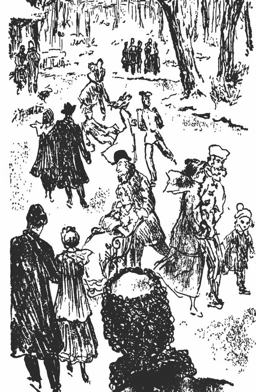 Был ясный морозный день. У подъезда рядами стояли кареты, сани, ваньки, жандармы. Чистый народ, блестя на ярком солнце шляпами, кишел у входа и по расчищенным дорожкам, между русскими домиками с резными князьками; старые кудрявые березы сада, обвисшие всеми ветвями от снега, казалось, были разубраны в новые торжественные ризы.