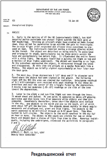 Часть документов об НЛО была обнародована в 2002 году, и среди них были отчеты по знаменитому «Рендельшемскому делу», согласно которым офицеры видели четырехпалых когтистых существ ростом 1,5 метра.