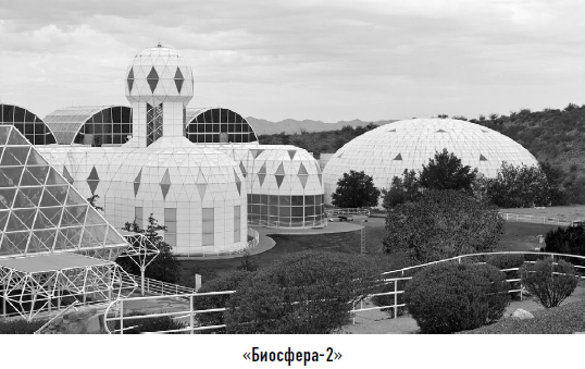 В 1991 году в американской пустыне Аризона был запущен крупный проект «Биосфера-2». Подразумевая, что «Биосфера-1» – это сама планета Земля. Под огромными шестиэтажными колпаками, полностью изолированными от окружающей среды и атмосферного воздуха, площадью полтора гектара, разместились семь экологических систем в миниатюре: влажный тропический лес, саванна, болото, океан, пустыня. Кроме того, там соорудили бассейны для рыб, инсектариум с 250 видами насекомых, сельскохозяйственную ферму для 4 тысяч видов растений и животных. А также жилую часть – комнаты для сотрудников, мастерские, информационно-вычислительный центр. Каждая из экологических систем была герметично отделена от других и имела свой особый климат. Например, испарение воды из «моря» осуществлялось с помощью вентиляторов. Полученный пар поступал в «джунгли», где поддерживалась определенная влажность, в искусственном небе имитировались облака и туман. Управляемые компьютерами защитные экраны создавали в каждом отсеке необходимые температурные и световые условия. Специальные установки поддерживали давление внутри конструкции.