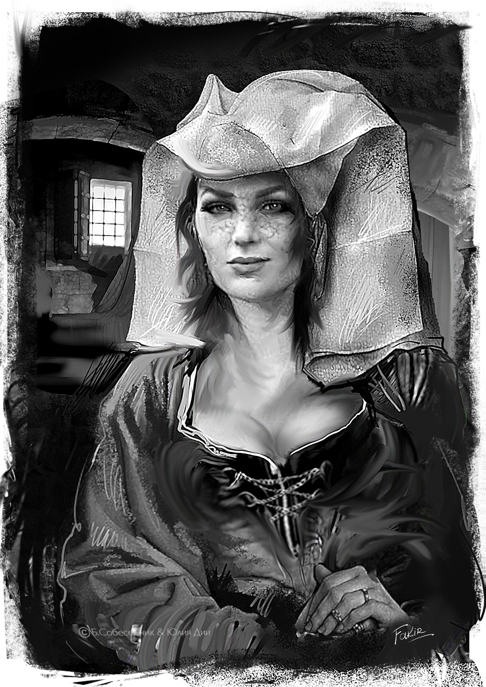 Миниатюрная, ладненько скроенная, нисколько непохожая на большинство ширококостных бочкообразных свонских фрау, сестра карстийского законника, при всей своей кажущейся хрупкости, обладала редкой физической силой и воинским умением, обращаясь с оружием по-свойски, не хуже иного вархунда 161 или, скажем, дюжего лангенарма 162. Жёсткая вертикальная складочка меж тонкими бровями вразлёт, немного тяжеловатая нижняя челюсть, частенько играющие на скулах желваки характер выдавали волевой, решительный и малость авантюрный. В то же время чуть припухшие, красиво очерченные губы, глубокие, далеко не всегда, к слову, мечущие молнии, озорные чагравые глазищи, томный перелив крепких крутых бёдер, удивительно, несмотря на зрелый возраст, соблазнительные, прекрасных очертаний, упругие яблочки грудей, явственно угадывающиеся под блио 163 тончайшей элефийской шерсти, позволяли судить о необычайной чувственности их обладательницы, диковатой, непредсказуемой, оттого всегда свежей и желанной. Добавьте в канву непослушные, вечно выбивающиеся из-под атура 164 тёмно-медные вихры, слегка вздёрнутый аккуратный носик, рассыпь очаровательных веснушек по щекам – и вы получите вполне, для начала, достаточное представление о незаурядной внешности любимой жены психостата-трактирщика.