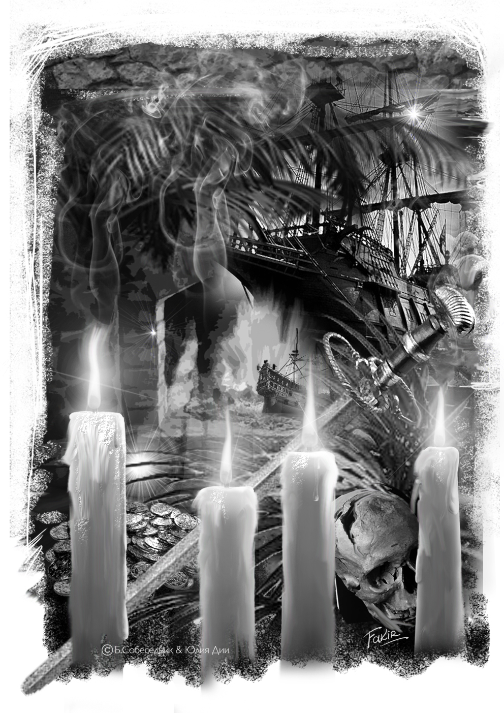 Сигаретный дым клубился, размывая туманом дрожащие огоньки свечей, мирно потрескивали рубиновые россыпи углей в камине, и казалось, всё происходит где-нибудь в Вест-Индии эпохи Короля Якова 109, в маленьком уютном портовом кабачке, а не в безжалостно-враждебном мире свонского захолустья. Хотя, по большому счёту… Гм… Велика ли разница?
