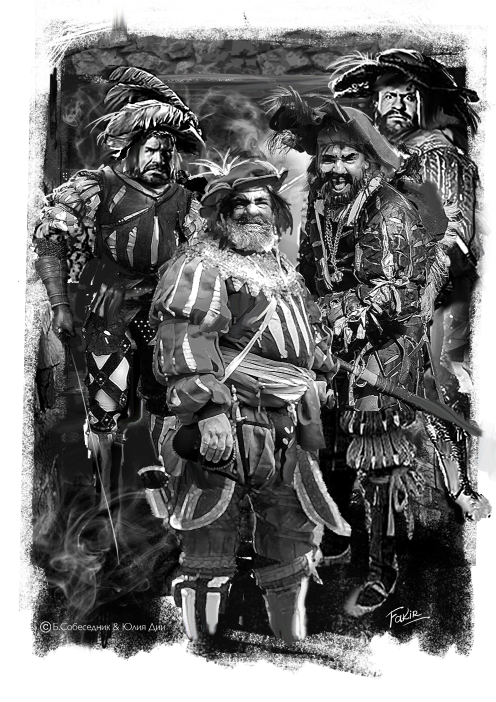 Договорить друзьям, к сожалению, не удалось, ибо грохотнула дверь и в комнату со страшным шумом, чертыхаясь, спотыкаясь, ввалились четверо гоблинообразных, на удивление трезвых и оттого, видимо, чрезвычайно раздосадованных субъектов. Подробно останавливаться на их внешности не станем, много чести бузотёрам, отметим лишь безвкусно яркие, канареечных расцветок одеяния, привычные уже лохматость, неряшливость и неотступно следующий по пятам устойчивый козлиный запах! Все при мечах, ребята по свонским меркам рослые, крепкие, за исключением одного, низенького и кругленького, похожего на обрюзгшего красномордого поросёнка. Последний, что тут же выяснилось, и являлся главным заводилой, возбудителем, будем говорить, общественного порядка.