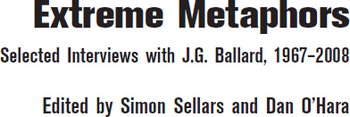 Ballard was never comfortable defining his place within the canon, and had little time for contemporary literature, which he saw as stuck in the mode of the nineteenth-century ‘social novel’, unwilling or unable to confront the fragmented subjectivities induced by the new media landscape. In contrast, his stories and novels present psychosociological case studies, based on highly skilled readings of real-world trends in culture, consumerism, technology and media. Frequently, this predictive charge was fomented in the interview situation, a kind of philosophical ‘laboratory’ where he could test ideas, opinions and observations, and later smuggle them into the airlocked worlds of his fiction. The opportunity to review his interviews is therefore an important one, and, in the twilight zone of critical opinion that invariably follows an important writer’s death, to be taken seriously. With the benefit of hindsight, and Ballard’s complete body of work before us stretching back fifty-five years, not only are we able to unearth the philosophical and imaginative seeds that would spawn his most significant writing, but we are also able to experience a kind of extended remix of the themes woven throughout his work.