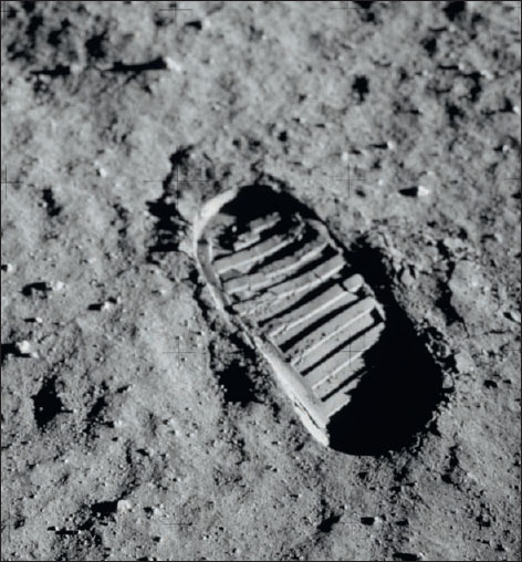 The time had come. Neil Armstrong stepped out of the Eagle, descended the ladder and walked on the moon, 109 hours and 42 minutes after he had left planet Earth. An estimated 530 million people watched Armstrong’s televised image and heard his voice describe the event as he took ‘...one small step for [a] man, one giant leap for mankind’. After 20 minutes, Aldrin followed him and became the second human being to make footsteps in moondust.