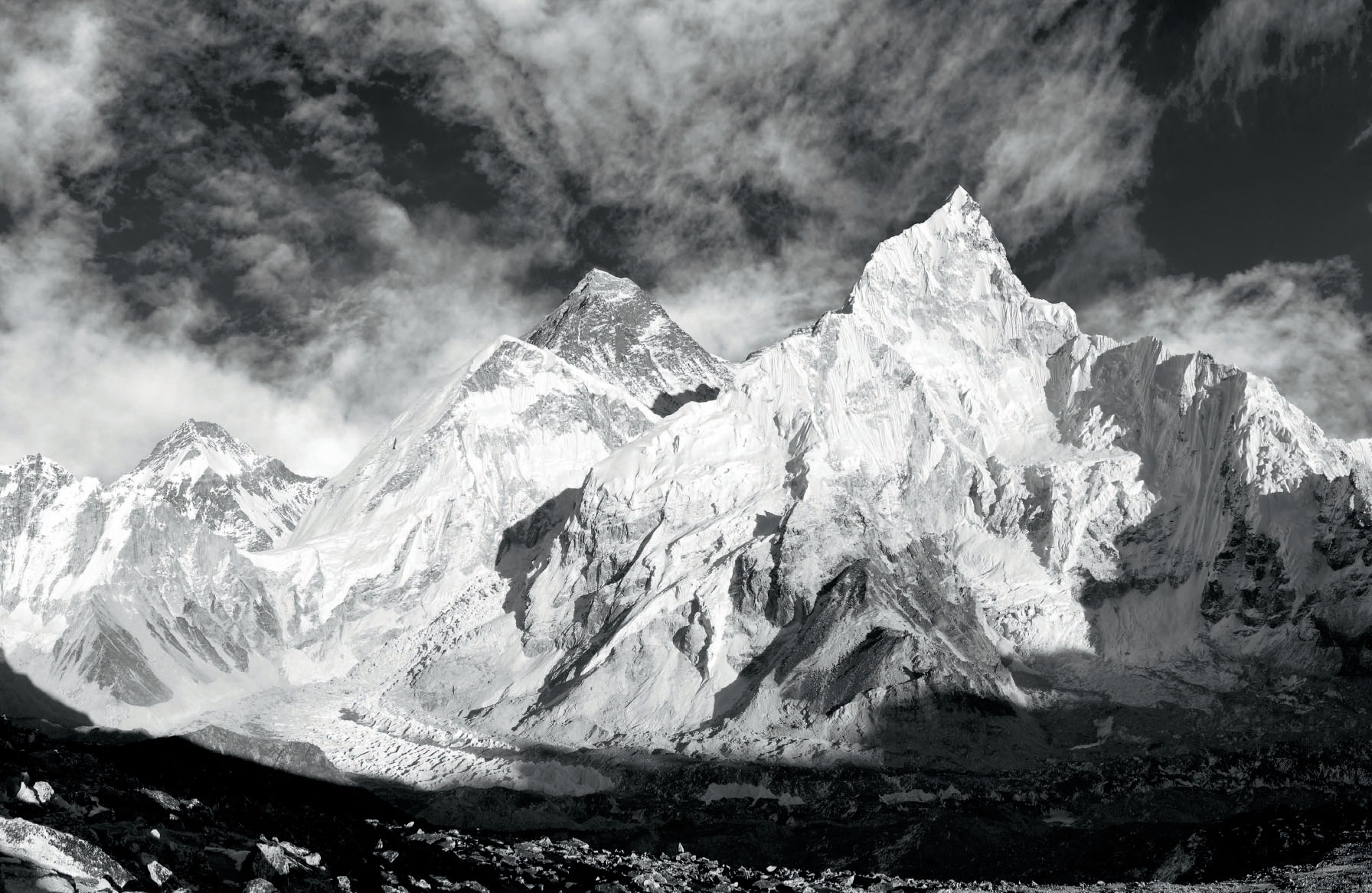 Khumbu valley, Nepal. Mount Everest is behind the Khumbu Glacier on the left side of the picture.