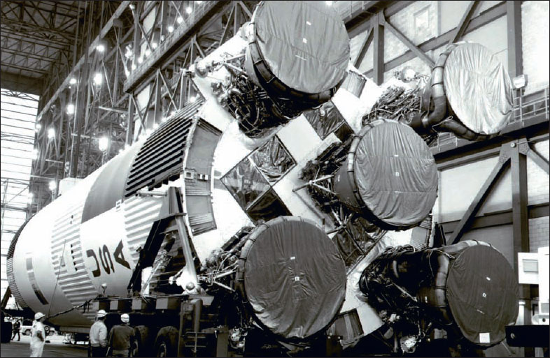Their tiny habitat was bolted on to the top of a colossal Saturn V rocket. At 111 m (363 ft) high, Saturn V stood 18 m (58 ft) taller than the Statue of Liberty. It is still the tallest, heaviest, and most powerful rocket ever built.