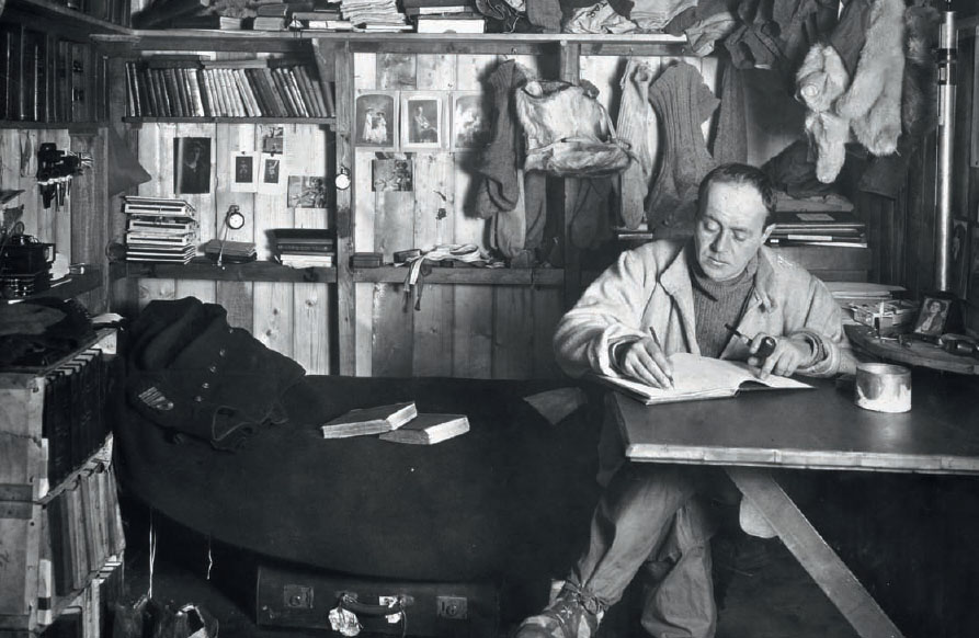 Captain Scott writing in his journal in the expedition hut in October 1911, before setting out for the pole.