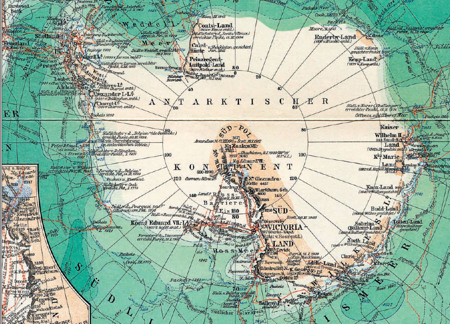 An extract of a German map from the period showing the explorers’ routes to the South Pole.