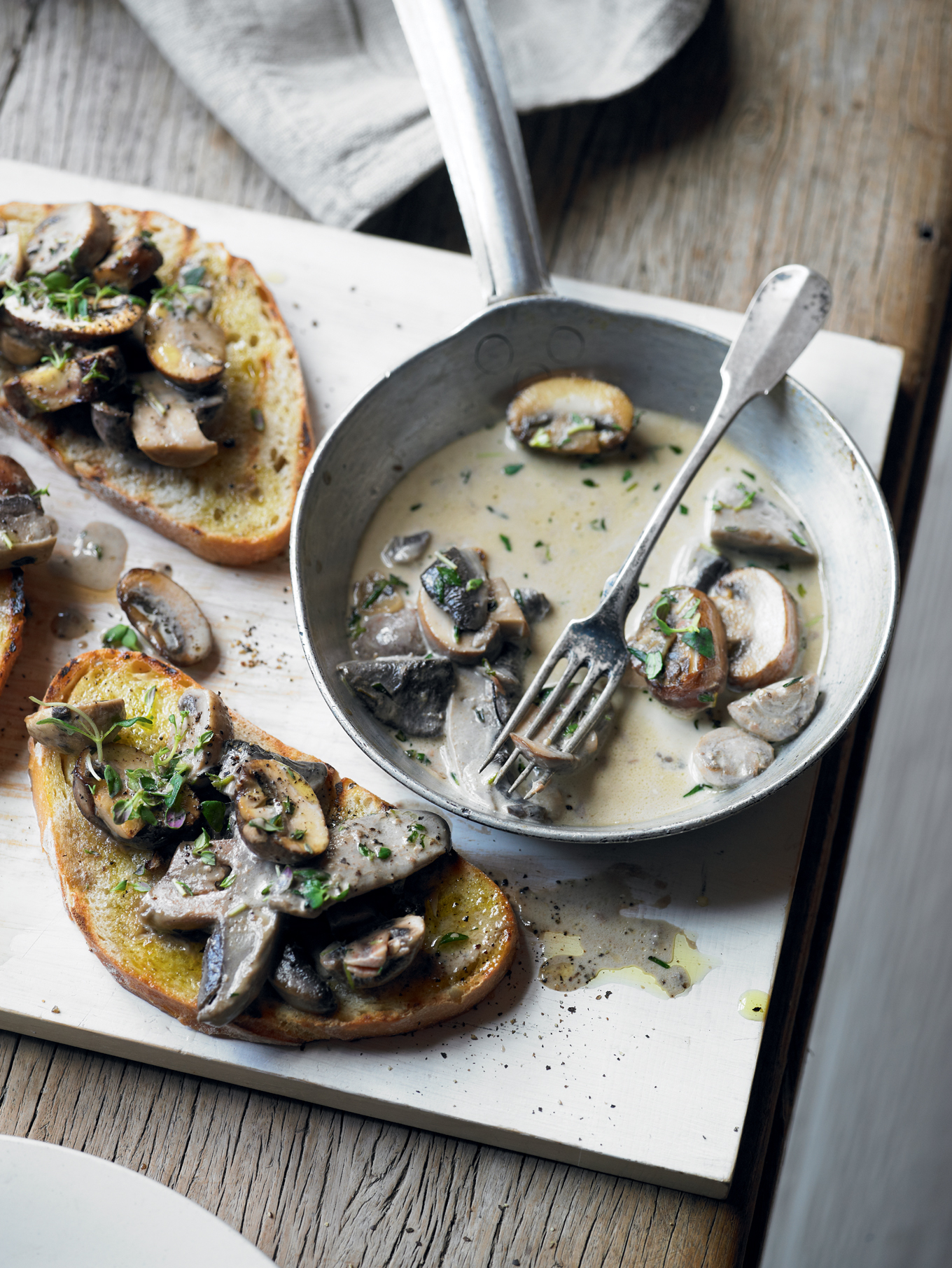 * Stir the cream into the mushrooms, increasing the heat to allow it to bubble for 1–2 minutes, then taste for seasoning and serve on the buttered toast.