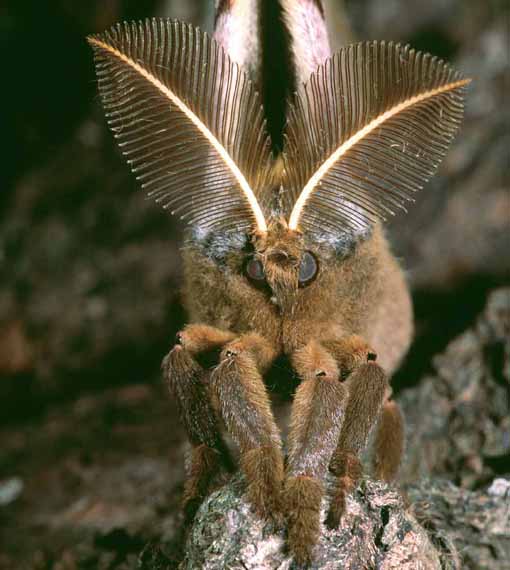 The likelihood is, though, that moths are the record-holders, especially the males. They use their antennae to home in on the sex pheromones, or chemical allures, released by females and can even detect if these females are on plants suitable for egg-laying. Some females release deviously small amounts of pheromone, to make sure that only those males with the most highly tuned antennae can follow the trails. The likely record-holder for the best known sense of smell is the polyphemus moth: just one pheromone molecule landing on a male’s antennae will trigger a response in his brain.