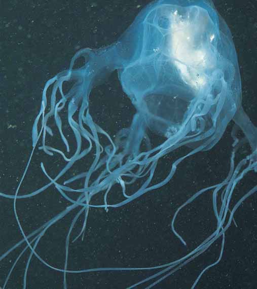 There are four bundles of about ten tentacles, most over 2m (6ft 6in) long and each carrying around 3 million nematocysts. The toxin contains chemicals that affect heart muscle and nerves and destroy tissue, the purpose being to kill a fish quickly so it doesn’t get away. But if a box jellyfish encounters a human, it may also sting in self-defence. The pain is excruciating, and without anti-venom, a victim can die from heart failure in just a few minutes. In addition, nematocysts fire not just on command but when stimulated physically or chemically. Strangely, they can’t penetrate women’s tights, and until ‘stinger suits’ became available, lifesavers patrolling beaches would wear tights unashamedly.