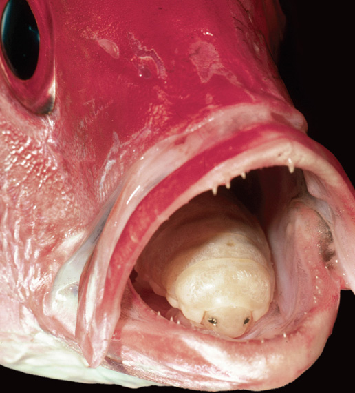Perhaps the practice is not as gruesome as it looks, as the rose snapper can continue to feed, but no one knows whether a time comes when Cymothoa decides to let go and get a taste of blood in someone else’s mouth. Strangely, the relationship between the fish and its parasite has been observed only in the Gulf of California, or Sea of Cortez, though the fish is found in the eastern Pacific, from Mexico to Peru. It is the only known example of a parasite replacing not just a host’s organ but also its function (to hold prey) – a hard act to swallow.