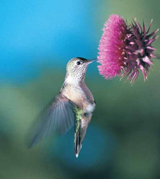 To say this or any other hummingbird drinks like a fish is to understate how much it drinks. In proportion to its body weight, it drinks a lot more than a fish. (Just to get that cliché straight: freshwater fish don’t drink – they absorb water through their skin. Saltwater fish that drink don’t do so to excess.) In the case of the hummingbird, it’s the fault of the flowers. Hummingbirds have evolved to drink nectar. The flowers they visit have evolved to provide that nectar, and the nectar they provide is typically about 30 per cent sugar and the rest water. To keep their wings going at a rate quicker than the human eye can see – to hover – hummingbirds need a huge amount of sugar, which means that by drinking nectar they take in up to five times their body weight in water every day.