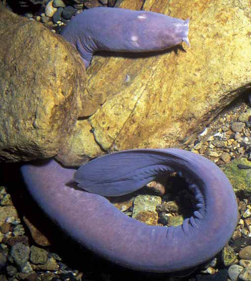 That’s nothing, however, compared to what it does when it’s threatened. Glands all along its sides exude a slime concentrate that reacts with seawater to create a cloud of mucus goo hundreds of times larger than the original secretions. It’s very tough goo, too – reinforced by thousands of long, thin, strong fibres – and the offending predator or unlucky passer-by becomes stuck in it and suffocates. The hagfish itself would suffer a similar fate, except that it has a way of extricating itself: it ties itself into a knot and slips the knot down the length of its body, squeezing free in the process.