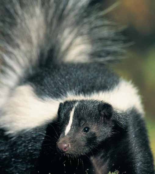 NAMEstriped skunk Mephitis mephitisLOCATIONNorth AmericaABILITYdefending itself with a spray containing the smells that mammals hate most