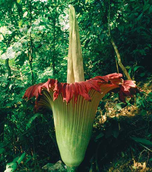 NAMEtitan arum, corpse flower, or devil’s tongue, Amorphophallus titanumLOCATIONwestern Sumatra, IndonesiaABILITYpumping out the smell of decomposing flesh