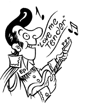 My dad’s an Elvis Presley look-alike. He’s got a white suit just like Elvis had, and a guitar, and he sings all the songs that Elvis sang. Blue Suede Shoes, Hound Dog, Love me Tender, Love me True. He knows them all!