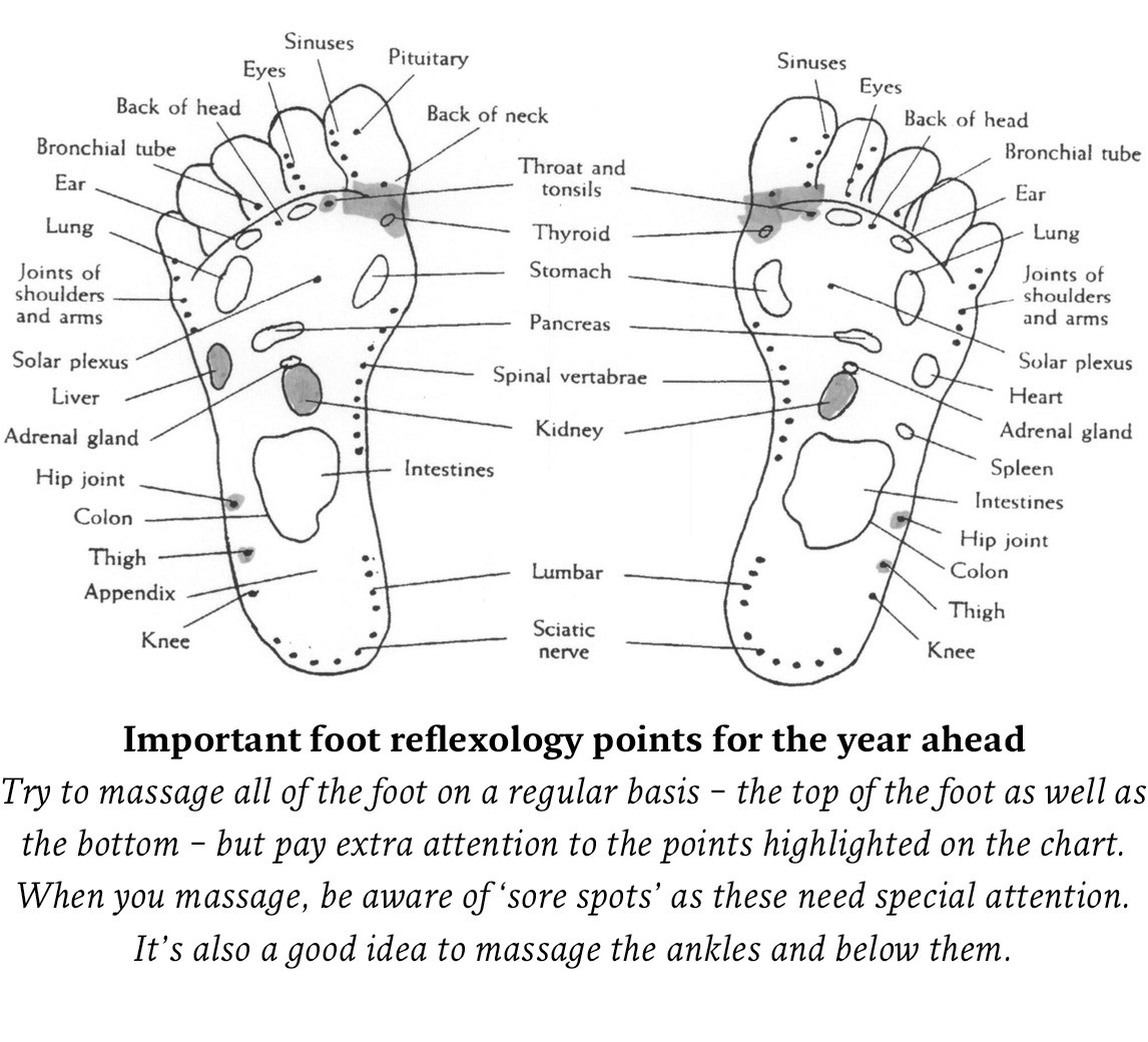 Good though your health is you can make it even better. Give more attention to the following – the vulnerable areas of your Horoscope (the reflexology points for these areas are shown in the following chart):