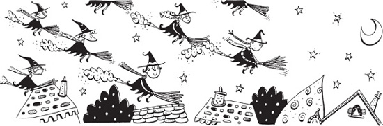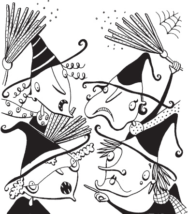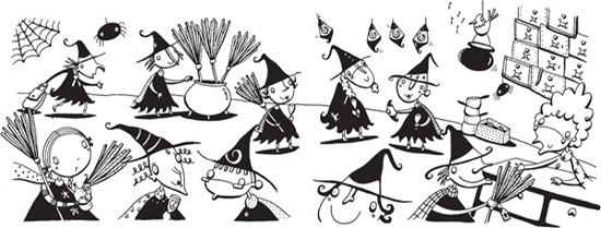 After that, no one seemed to care about their turn in the queue any more. Jessica suspected that Miss Strega had been up to her old tricks, adding a spell to her potions so that all the witches wanted to do was spend, spend, spend and cackle, cackle, cackle. Even Berkeley, who was awfully shy about singing in public, had fallen under a spell. She perched prettily on the handle of the Brewing cauldron and bewitched the customers with her lovely silvery songs.