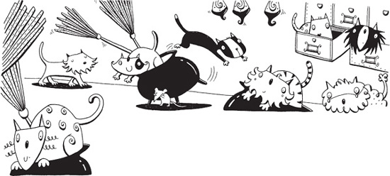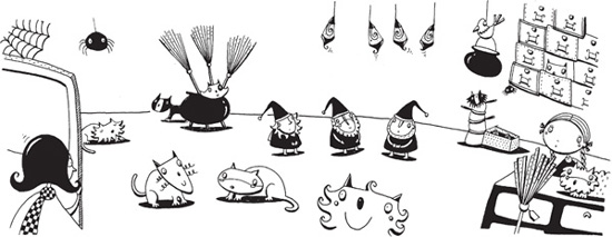 The problem was that the cats just wouldn’t leave. They mewed and howled, scratched and hissed. Some of them arched their backs and refused to budge. Others tried to trip Jessica up by doing figures of eight around her legs. Another big fat black one bolted from behind the counter and upset a teetering pile of cauldrons.