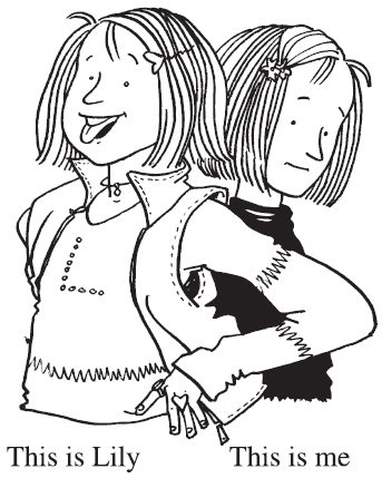 Lily says you would have to be blind to mistake her for me. But just to make sure, we always try to wear different clothes. When we can! Like, for instance, Lily will wear black jeans and I will wear red ones. She will wear an orange top and I will wear a white one. We can’t do this at school because of the uniform, but most people at school have learnt to tell us apart. They know that Lily is the LOUD one and I am the quiet one. It’s only, sometimes, new teachers that get us in a muddle. But not for long. If one of us is shrieking, they know at once that it is Lily!