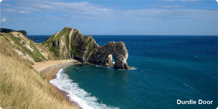 Most of the Dorset coast (together with part of the East Devon coast) was listed as an UNESCO World Heritage Site in 2001 because of its impressive geological formations and textbook examples of features of coastal erosion. The coast represents much of the Mesozoic era (251-66 million years ago) with a sequence of Triassic, Jurassic and Cretaceous rock exposures and it is commonly known as ‘The Jurassic Coast’. It has yielded a large number of animal and plant fossils including flying reptiles, marine reptiles and dinosaur footprints. The notable landforms include the sea stacks near Handfast Point, the cove at Lulworth and the natural arch of Durdle Door. The limestone island of Portland is connected to the mainland by the 18 mile pebble tombolo of Chesil Beach. The Fleet Lagoon, which Chesil Beach encloses, is one of the most important saline lagoons in Europe.