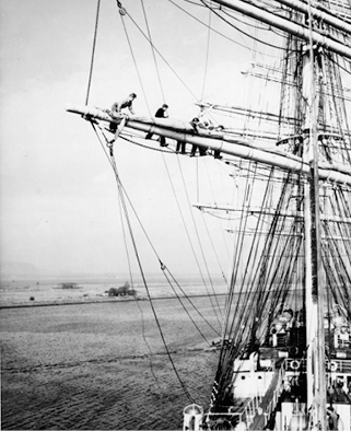 On Monday morning I was delighted to find that two more ‘foreigners’ had arrived on board and had been allotted to the starboard fo’c’sle. One of them, George White, was a tall thin young man from Massachusetts; the other was a young Dutchman called Jack Kroner who spoke fluent English. Both had signed on as apprentices, but Jack, who had been to sea before, had very sensibly evaded the premium which my father had been required to pay on my behalf, by arriving unheralded at the ship and striking a bargain on the spot.