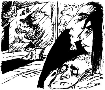 ‘Aw Mum. Who ever heard of a werewolf eating a toasted cheese sandwich? I mean to say, Mum. Couldn’t you have brought something like a pork chop?’