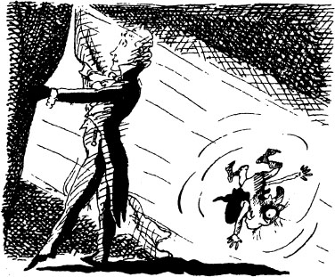 He raised an arm above his head to see if the other person who looked like him would raise his arm. He did. Valentine then lifted his top hat. So did the other fellow in the window. Igon and Valentine walked to the next shop and looked in their window. Yes, they could still see each other. They ran along the street, looking in all the windows, still seeing themselves. They were now shouting with joy, pointing to themselves in the window and to passers-by, who thought it was some crazy publicity stunt thought up to attract them to the circus.