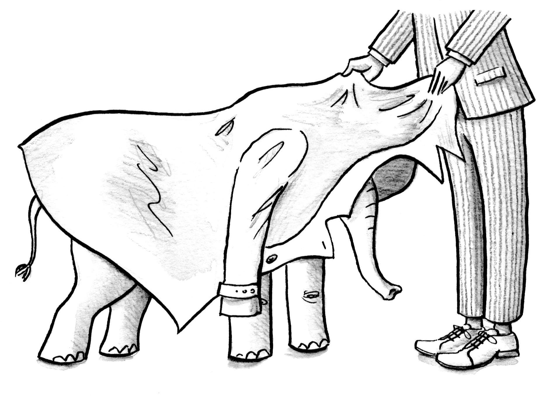 ‘Harrumph,’ said Howard, extricating himself. ‘What this elephant needs is fresh air and exercise.’